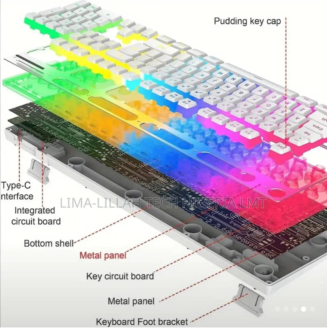 Ambidextrous Wireless Gaming Keyboard & Mouse Combo, Ergonomic Mechanical Design with Translucent Pudding Keycaps, 4800 DPi Rainbow LED Silent Mouse, 2.4G USB, Rechargeable Lithium Polymer Battery, Type-C Charging, for PC/Mac.